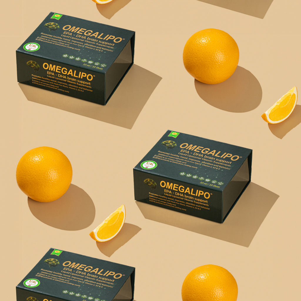 OmegaLipo Sıvı Lipozomal Vitamin Takviyeleri, narenciye aromasıyla kapsamlı beyin ve hafıza desteği sunar. Anahtar bileşenler arasında beyin gelişimi ve çalışan hafıza için hayati önem taşıyan temel omega-3 - 6 - 9 yağ asitleri olan EPA ve DHA bulunur. inflamasyonu azaltmak. Formül ayrıca genel olarak Flush-Free Niasin, C Vitamini, K2 ve D içerir. sağlığın iyileştirilmesi. Ayrıca daha iyi uyku, ruh hali ve davranışı teşvik eden Valerian içerir. Sıvı bir lipozomal dağıtım sistemi kullanan bu takviyeler, gelişmiş emilim sağlar ve Besinlerin biyoyararlanımı, onları geleneksel vitamin formlarından daha etkili kılar.