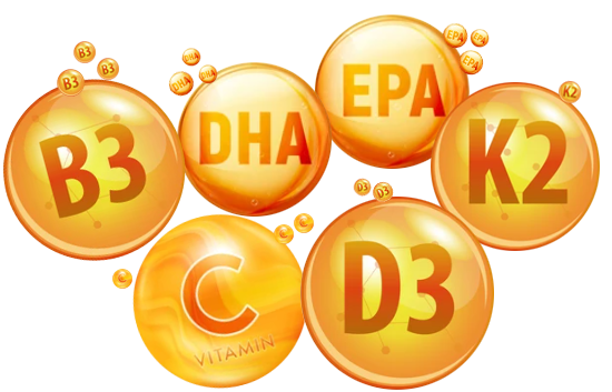 Vitaminlerin ve omega-3 yağ asitlerinin daha iyi emilmesi ve etkinliği için sıvı lipozomal dağıtımdan yararlanır.